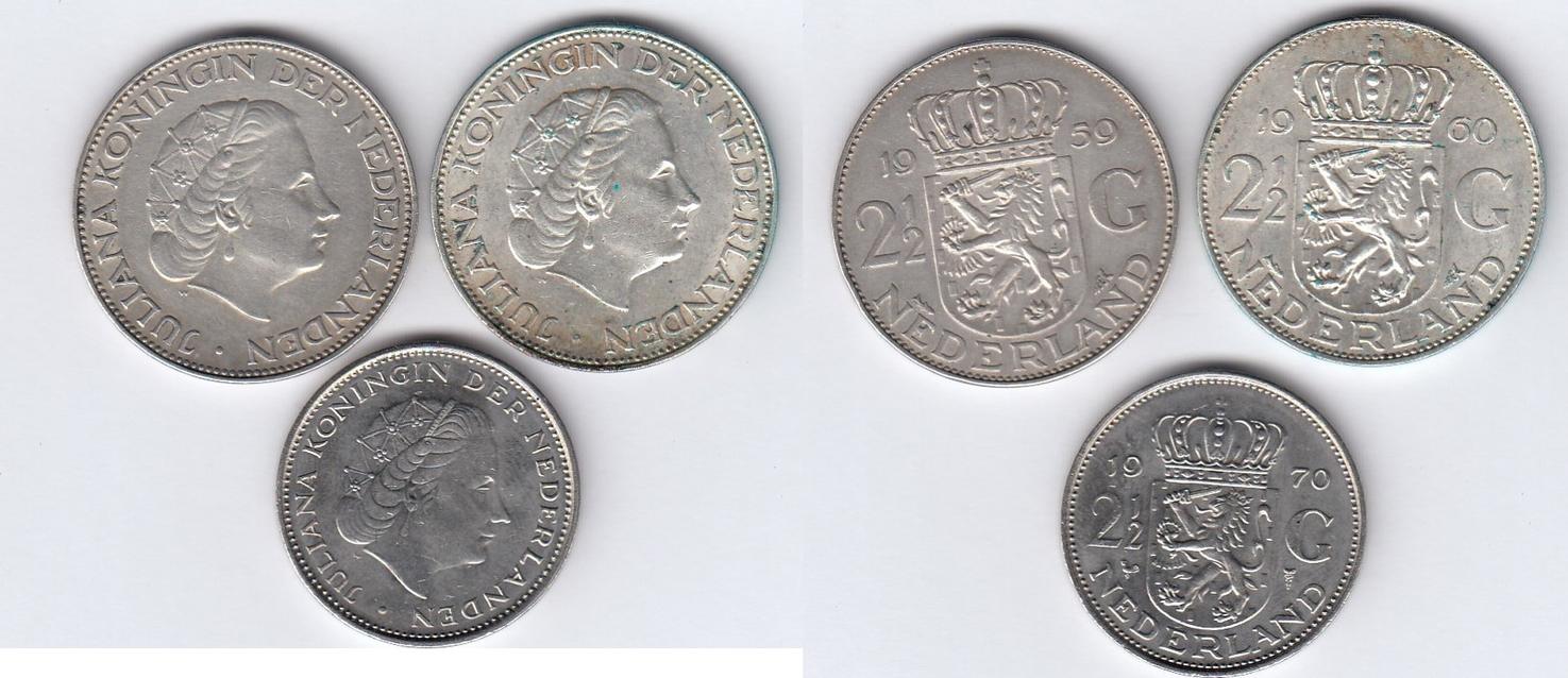 10 Nederlandse knaken met de afbeelding van Juliana (diversen jaartallen)