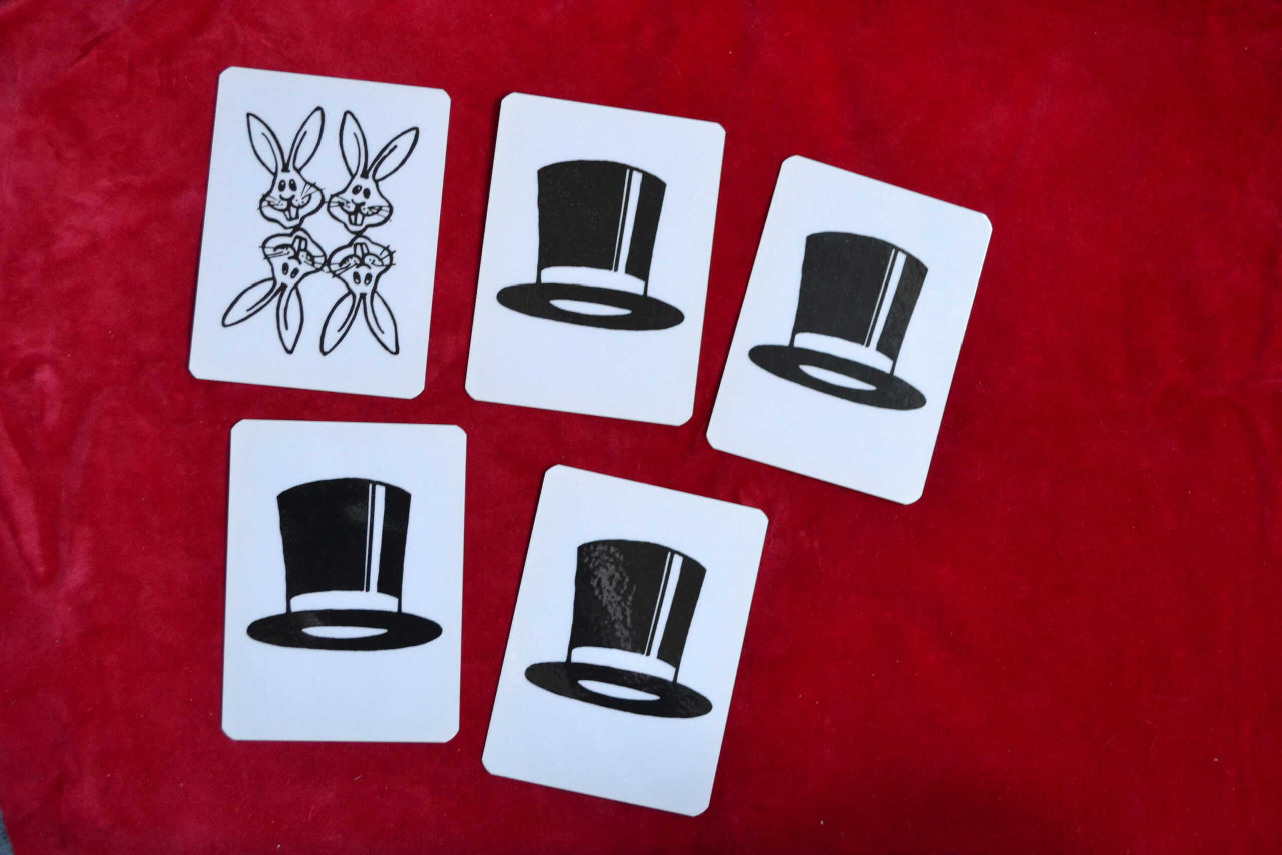 Goochelaar toont ongelijk aantal hoeden en konijnen, maar met een magische beweging
