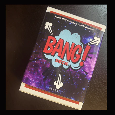 The first in a series of novelty and trick decks, Rich Hill’s Bang Deck makes a loud bang when your unsuspecting spectator picks up the deck!