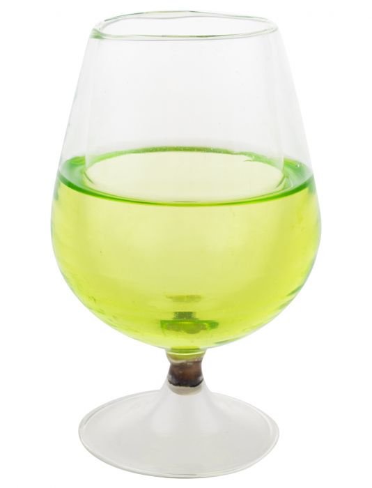 Cognac glas met dubbele wand gevuld met vloeistof die er niet uit kan. (kunstof)
