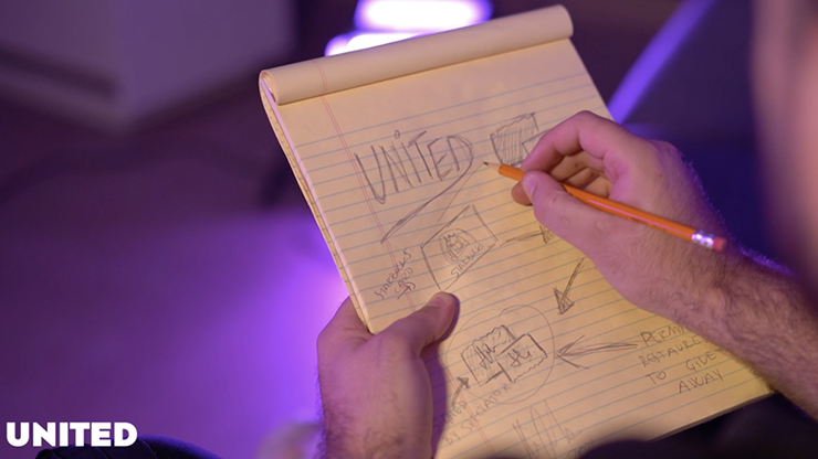 - United: a torn and restored business card which ends with an impossible souvenir.