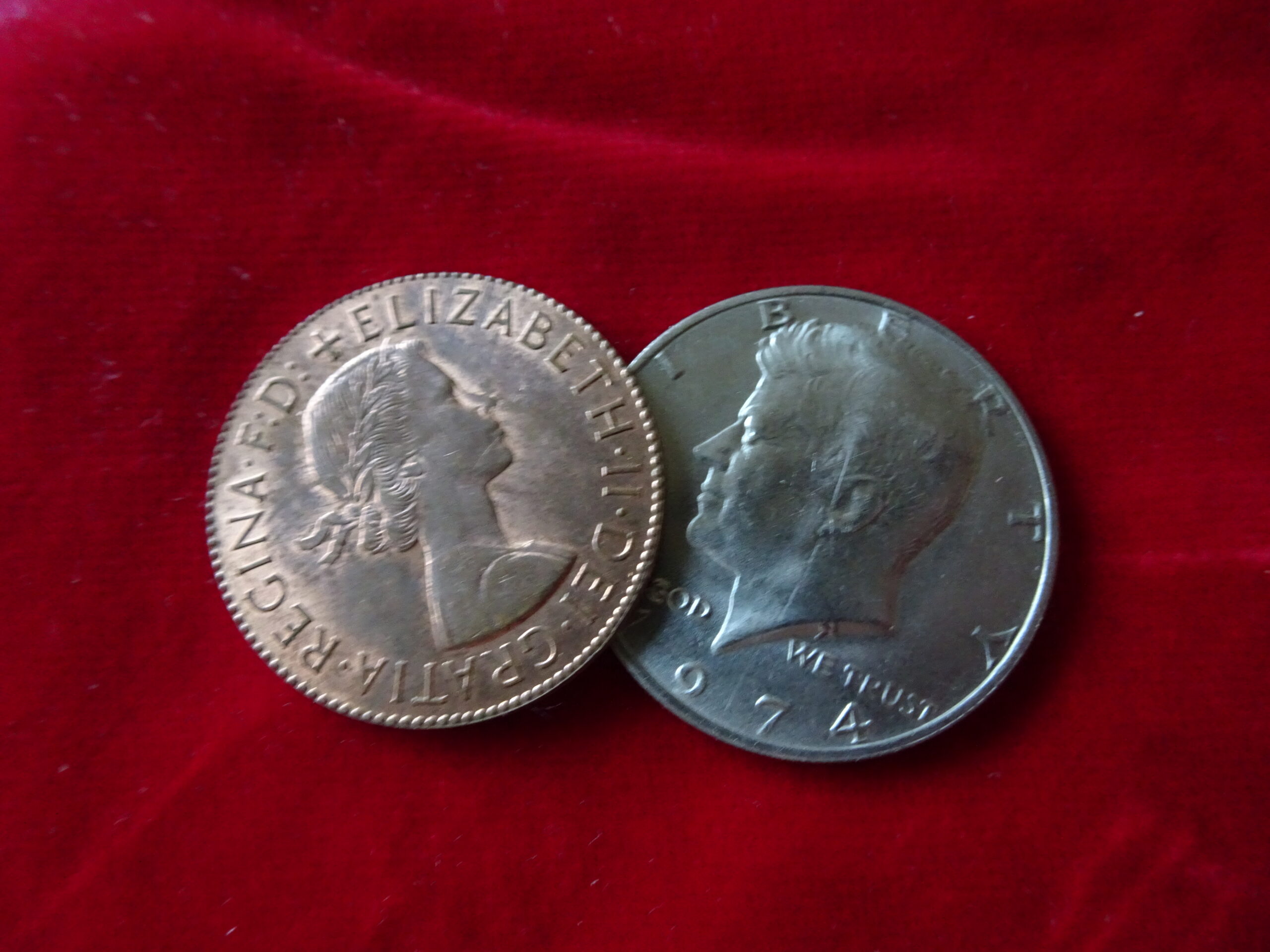 Engelse penny met halve dollar munt zijde met halve dollar shell (kop zijde)