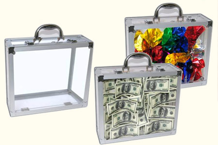 After production of bills; you bring the bills out and then you show the empty briefcase again.