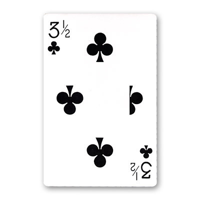 The perfect gag card. The magician says that he’ll find a card equivalent to one half of the card selected by the spectator. But since the spectator selected the 7 of Clubs, this feat proves difficult. Until the magician produces the 3 and 1/2 of Clubs!