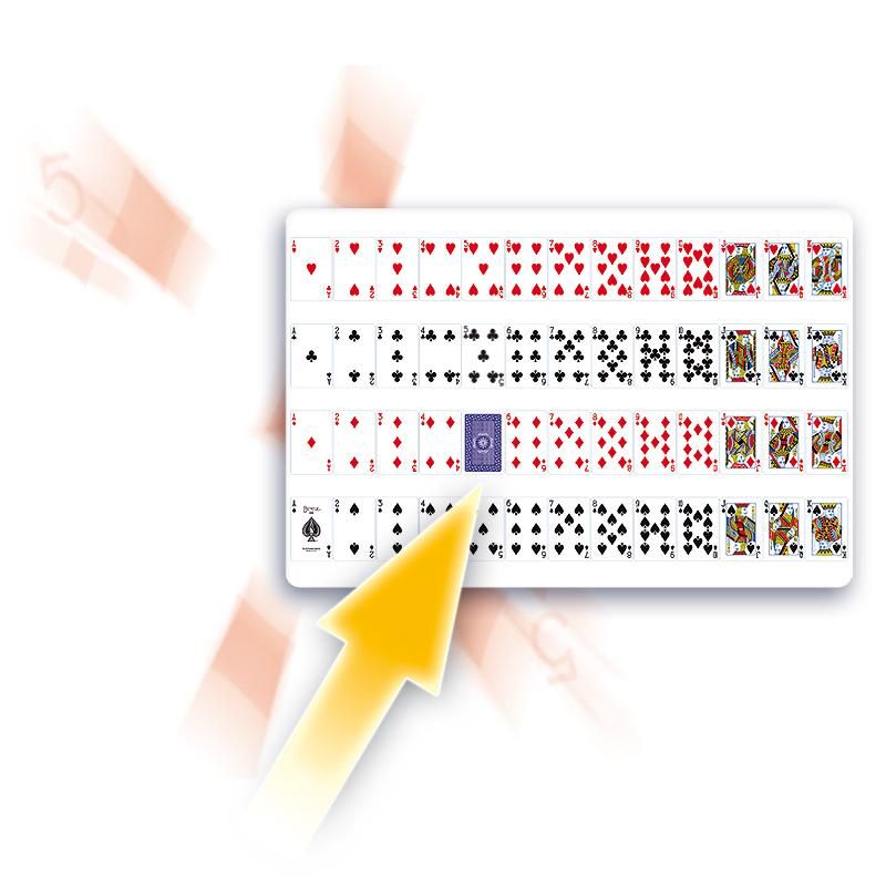 Next the magician takes out of his pocket a face down card saying that on it there is the chosen card. He turns it over and… there are all the 52 cards of the deck printed on it! The audience will start laughing understanding that the magician is joking. As soon as the spectator names his card though, the magician rubs his fingers on the printed prediction, and one card turns face down… and it is exactly the chosen one. In fact its face is now visible on the other side of the prediction card.