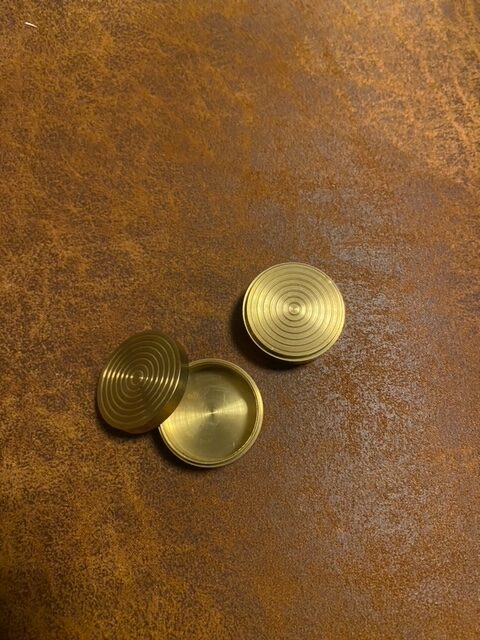 Mooie zware okito box (diameter 28 mm) met plugbox (plugbox is massief zodat het onmogelijk lijkt dat er munten in hebben gezeten)