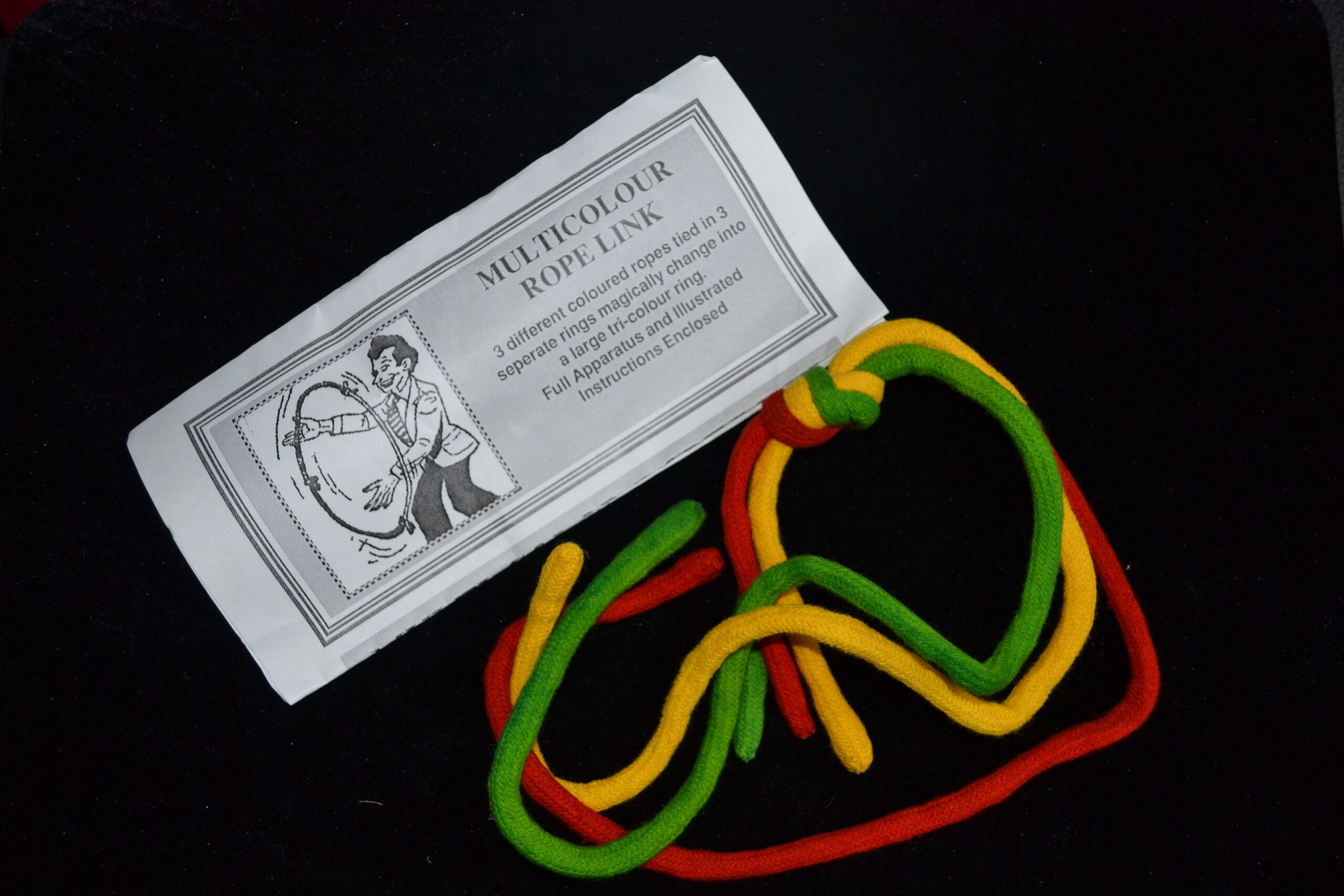 Drie touwen worden in drie lussen geknoopt , maar na een goochelspreuk is het een grote ring.