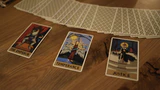 The performer introduces the Major Arcana from a deck of tarot cards and shows that on three of the cards, a single word is written. One card reads Past, another Present, and the third reads future. The cards are given a mix, and then the faces are shown, while the performer describes that the cards all represent something important in a person’s life. The performer asks the spectator to choose one card to represent their past, another to represent their present, and the last card to represent their future. The audience can freely name any card they wish. Those cards are clearly laid out on the table, and the performer gives the audience a short tarot reading before turning the selected cards over to reveal that the audience mysteriously managed to perfectly select the cards with the words, Past, Present, and Future written on the backs of the cards they selected for their reading.