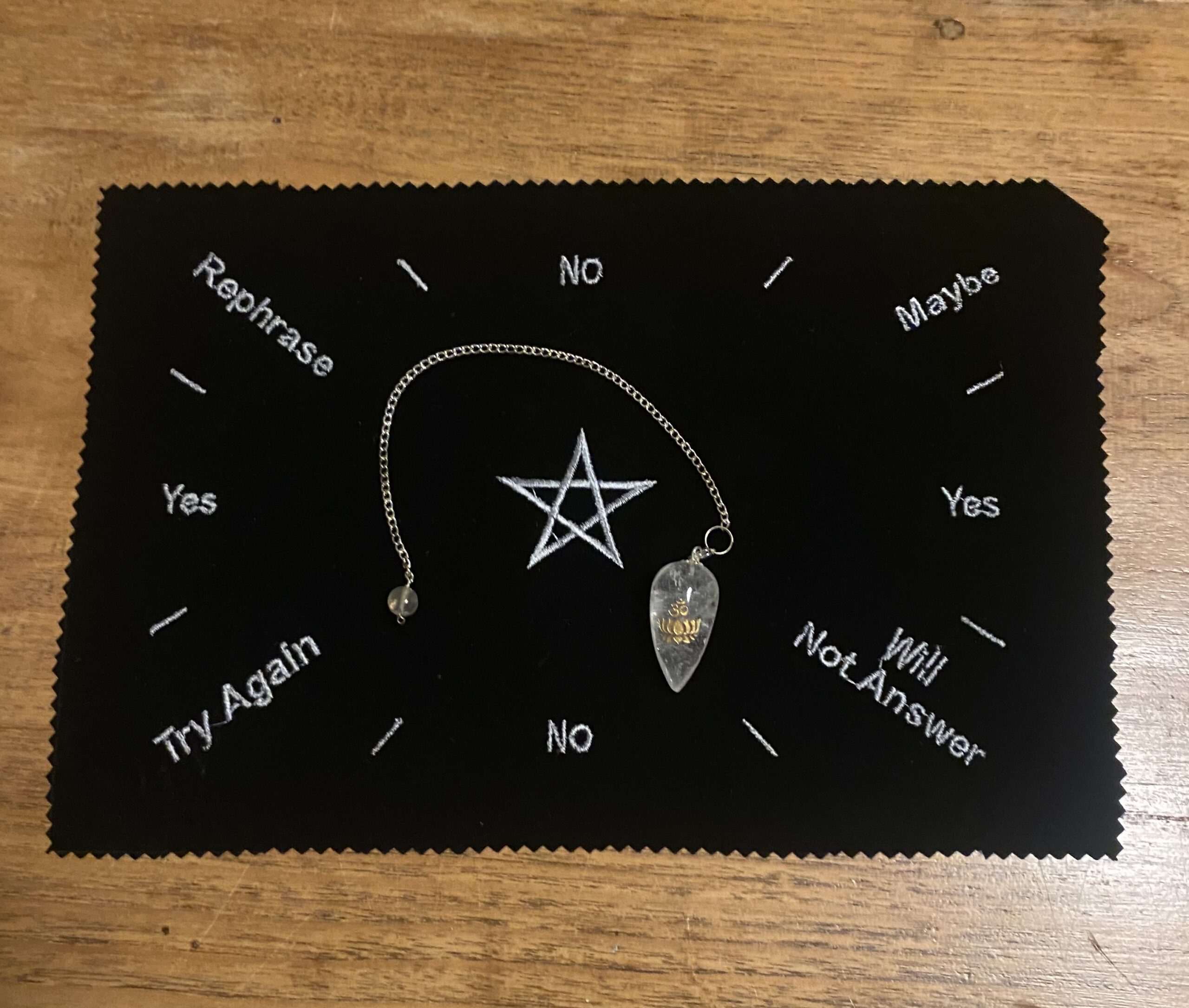 Pendel Mat Pentagram met Bergkristal druppel – Ohm/lotus