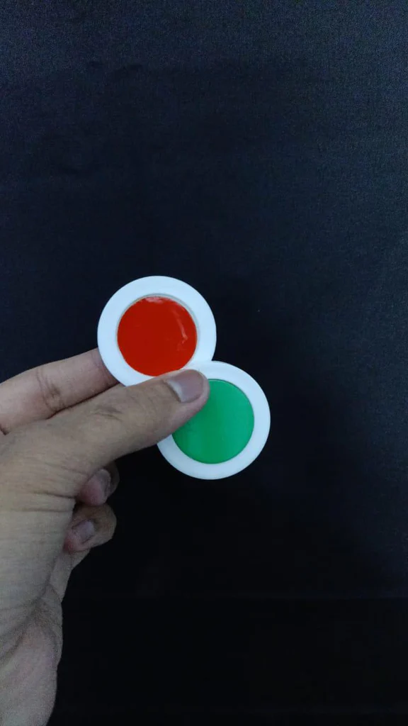 In effect, 2 poker chips with black spots on both sides change to chips of four different color spots, and everything can be examined. So simple, so effective, it’s “magic”.