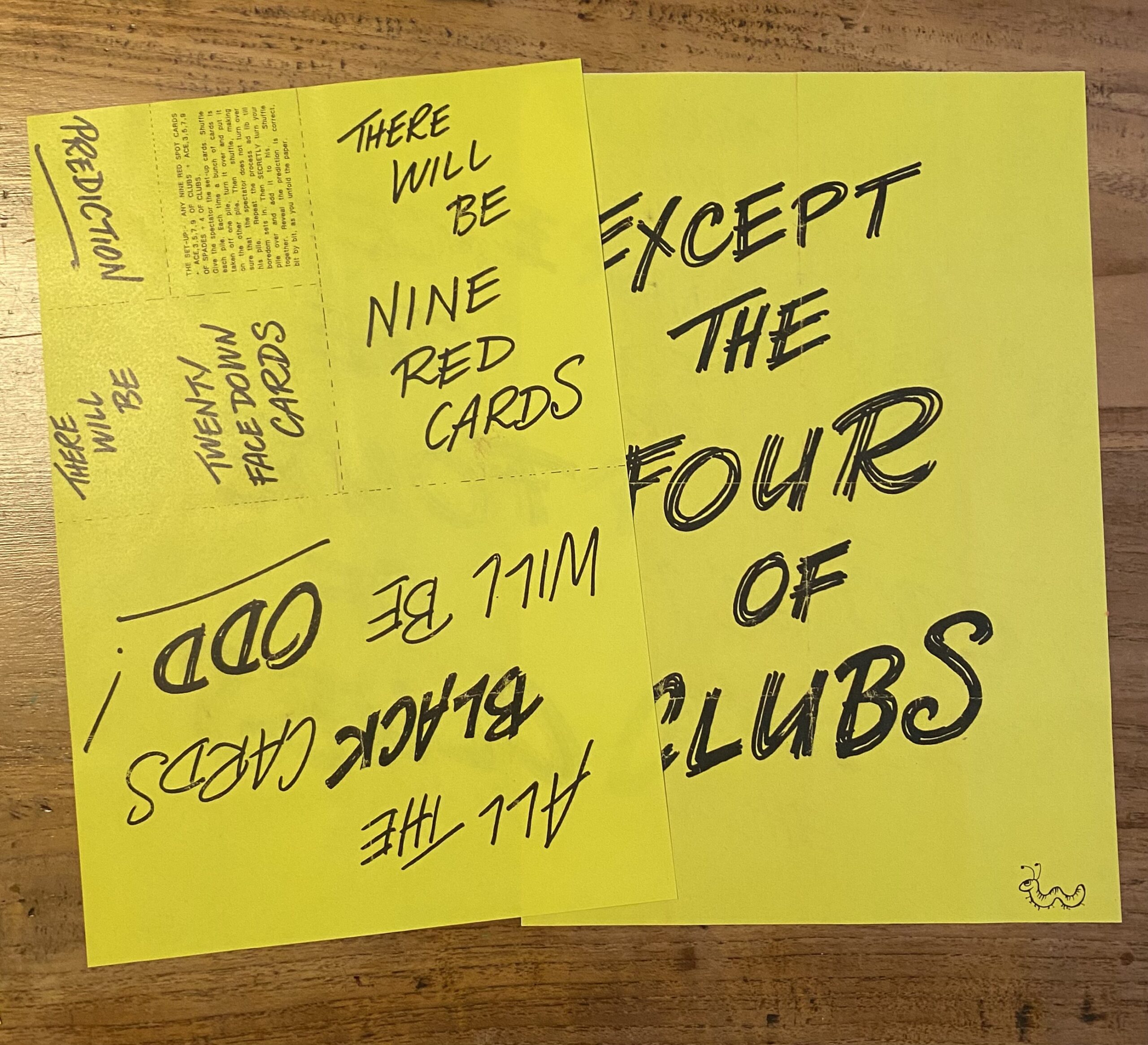 Zelf werkende kaarttruc waarbij de voorspelling steeds uitkomt zelfs als het mis dreigt te gaan.