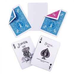 • The deck is poker size and is enriched by the addition of 1 Joker and 3 special cards: the first with a blank face, the second is a double back turquoise and the third is a double back turquoise/fuchsia.