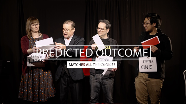 The performer shows a book called, “Influence & Intuition” and has a spectator think of a word. Four envelopes are shown, and each person gets a FREE choice of any envelope. The final envelope is left for the performer. Each person opens their envelope to find a color piece of paper inside, and inside the performer’s envelope is a piece of paper which predicts EXACTLY which spectator will choose which color!